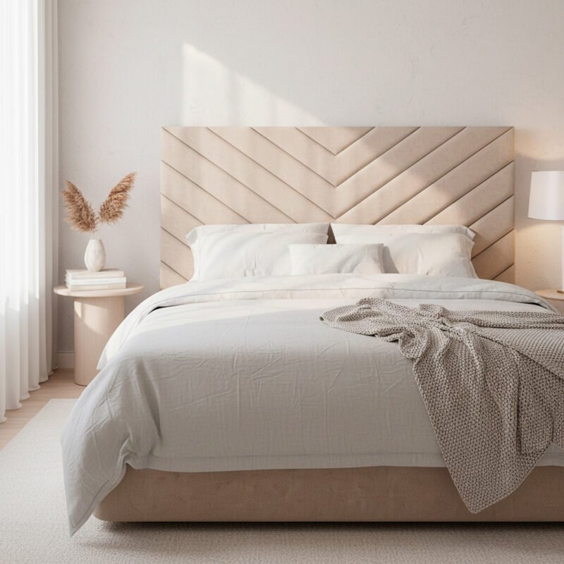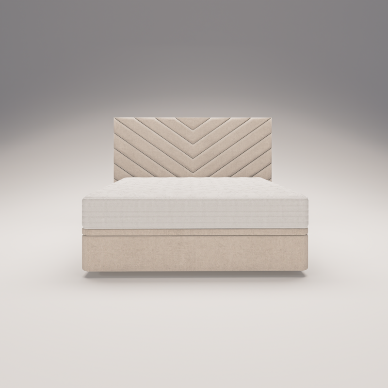 O padrão em “V” da cabeceira PORTO reflete a energia e estrutura marcante da cidade do Porto: sólida, carismática e com um estilo muito próprio. As linhas geométricas criam profundidade e elegância, enquanto o estofo assegura suavidade e conforto ao encostar.